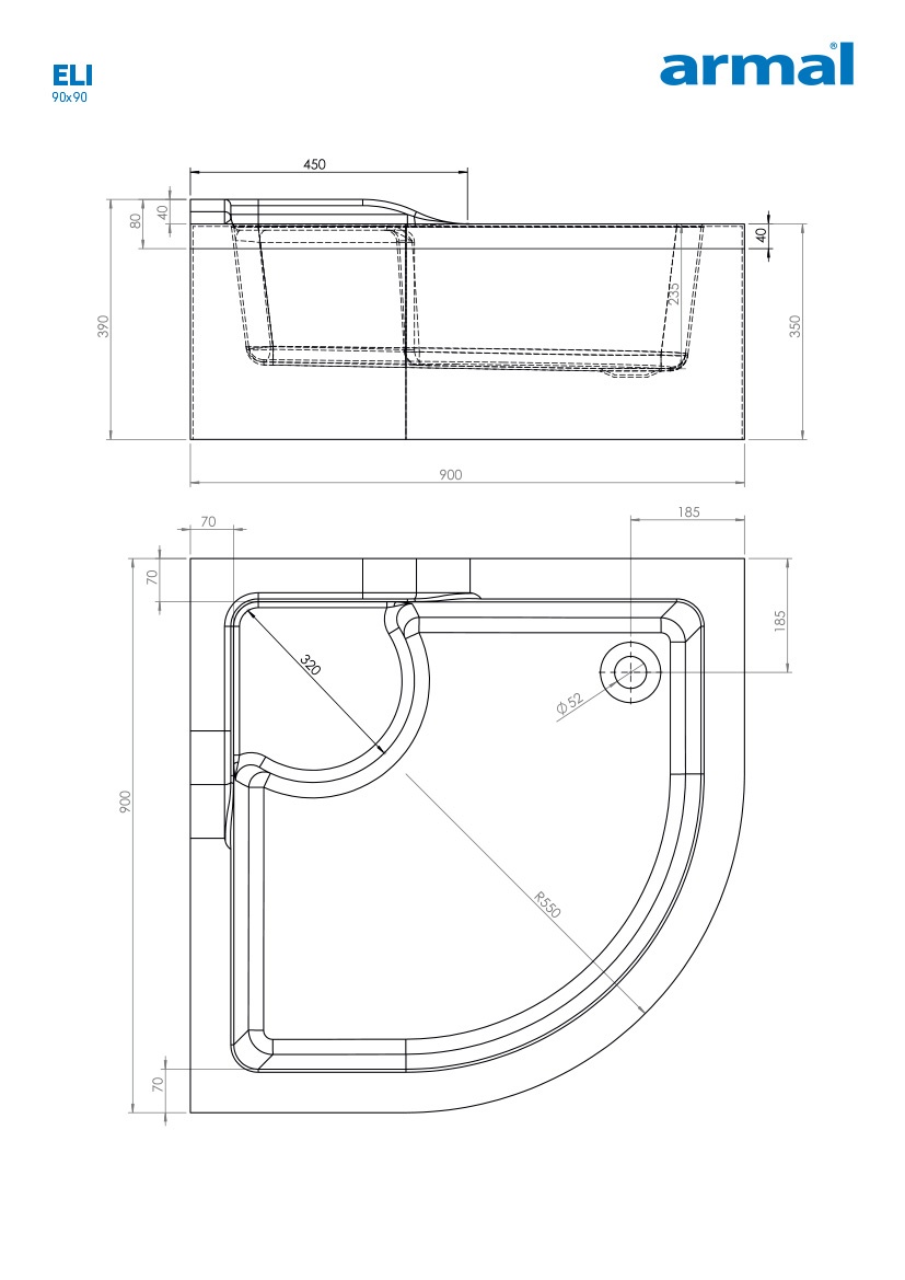 ELI10 polukružna duboka bez obloge 90 x 90 x 24 cm
