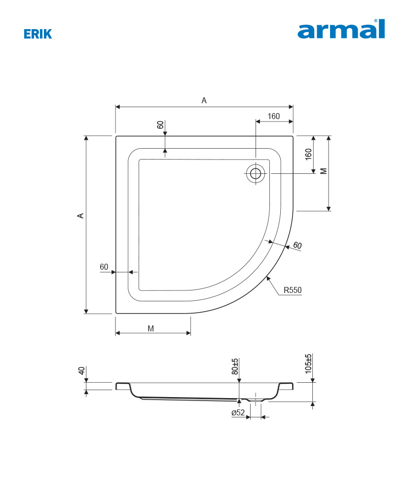 ERIK8 polukružna bez obloge 80 x 80 x 8 cm