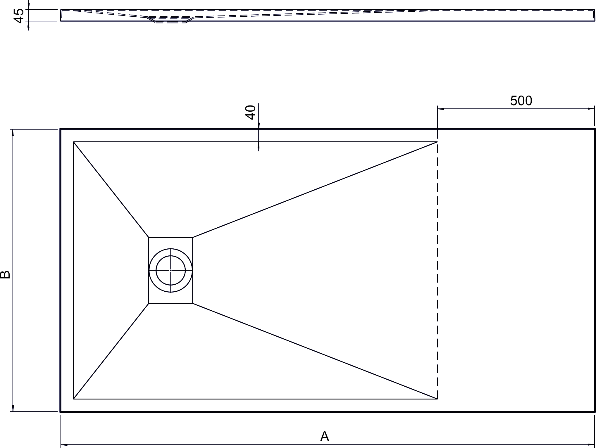 Pravokotna plitva akrilna kad za prho