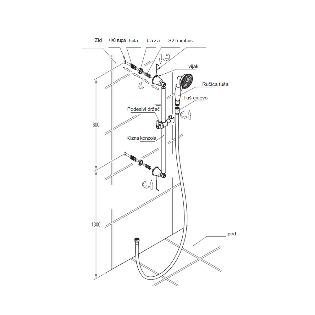 Okrugla pršna glava, 1 funkc. tuš ročka, tuš konzola, bronca