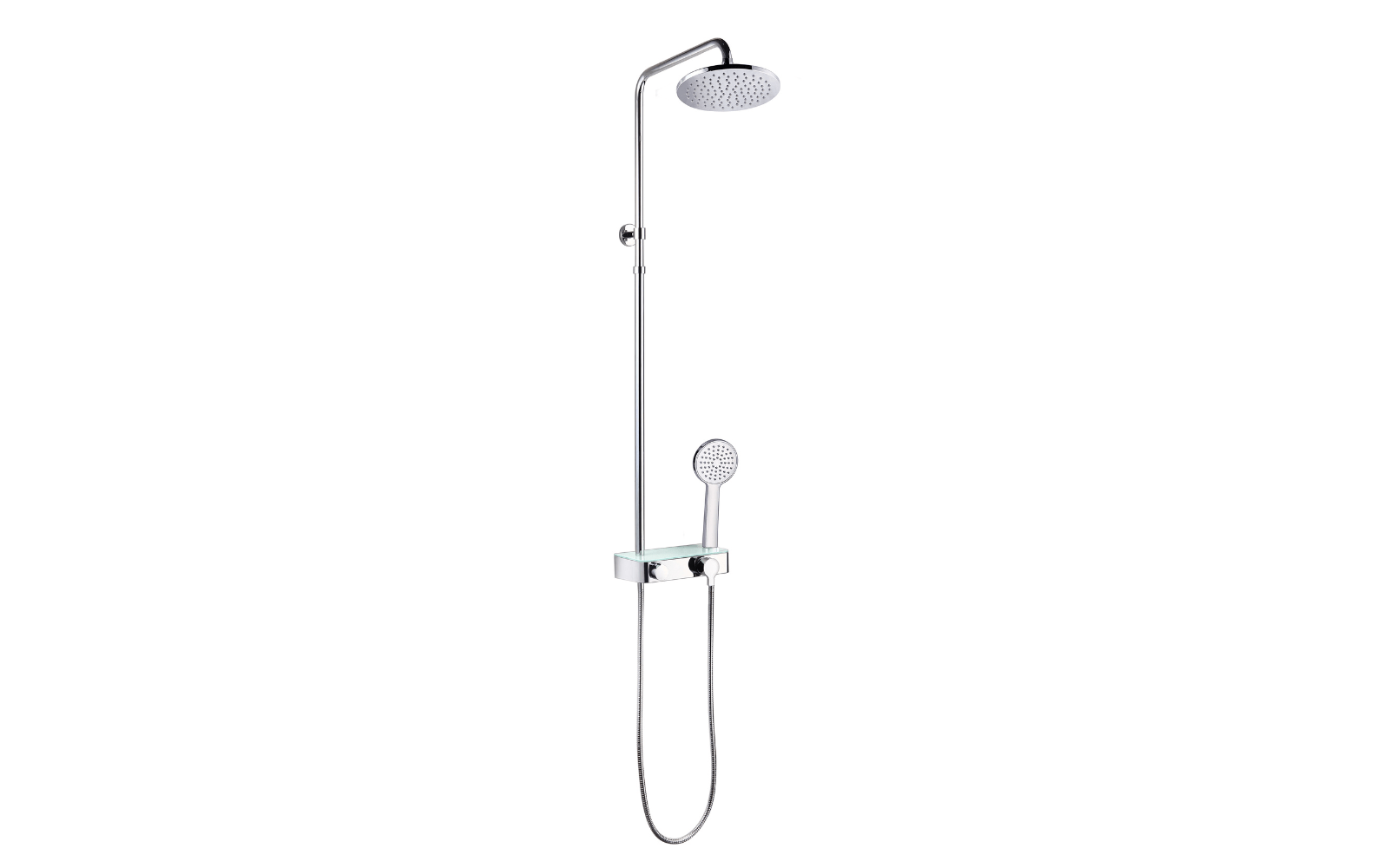Konzola za prho z armaturo, okrogla roža in tuš ročko je odlična izbira za klasične kopalnice.